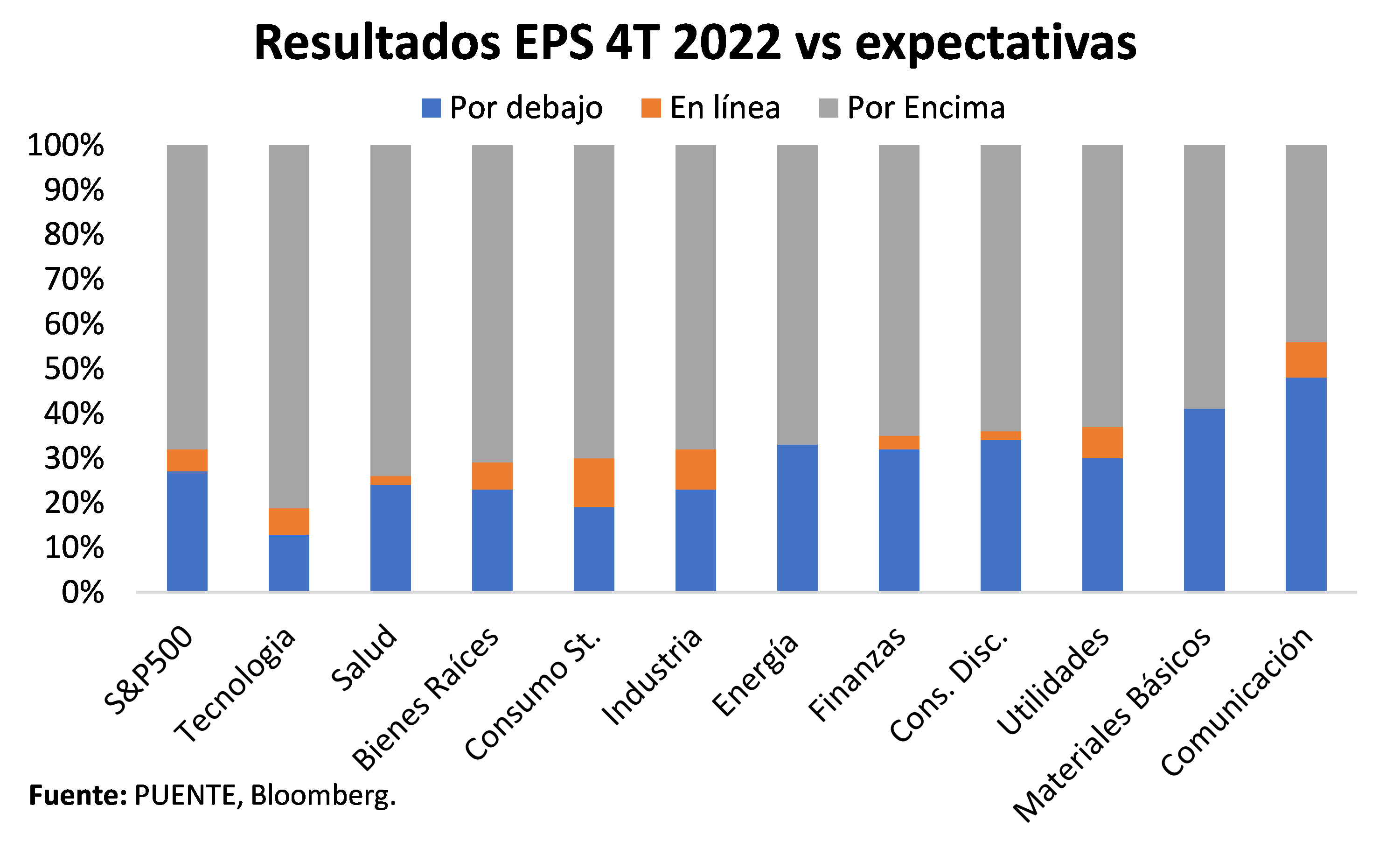La temporada de resultados del 4T22 va llegando a su tramo final, con el 82% de las compañías miembros del índice S&P 500 habiendo presentado sus balances. El 68% de estas superó las estimaciones de ganancias por acción (EPS).